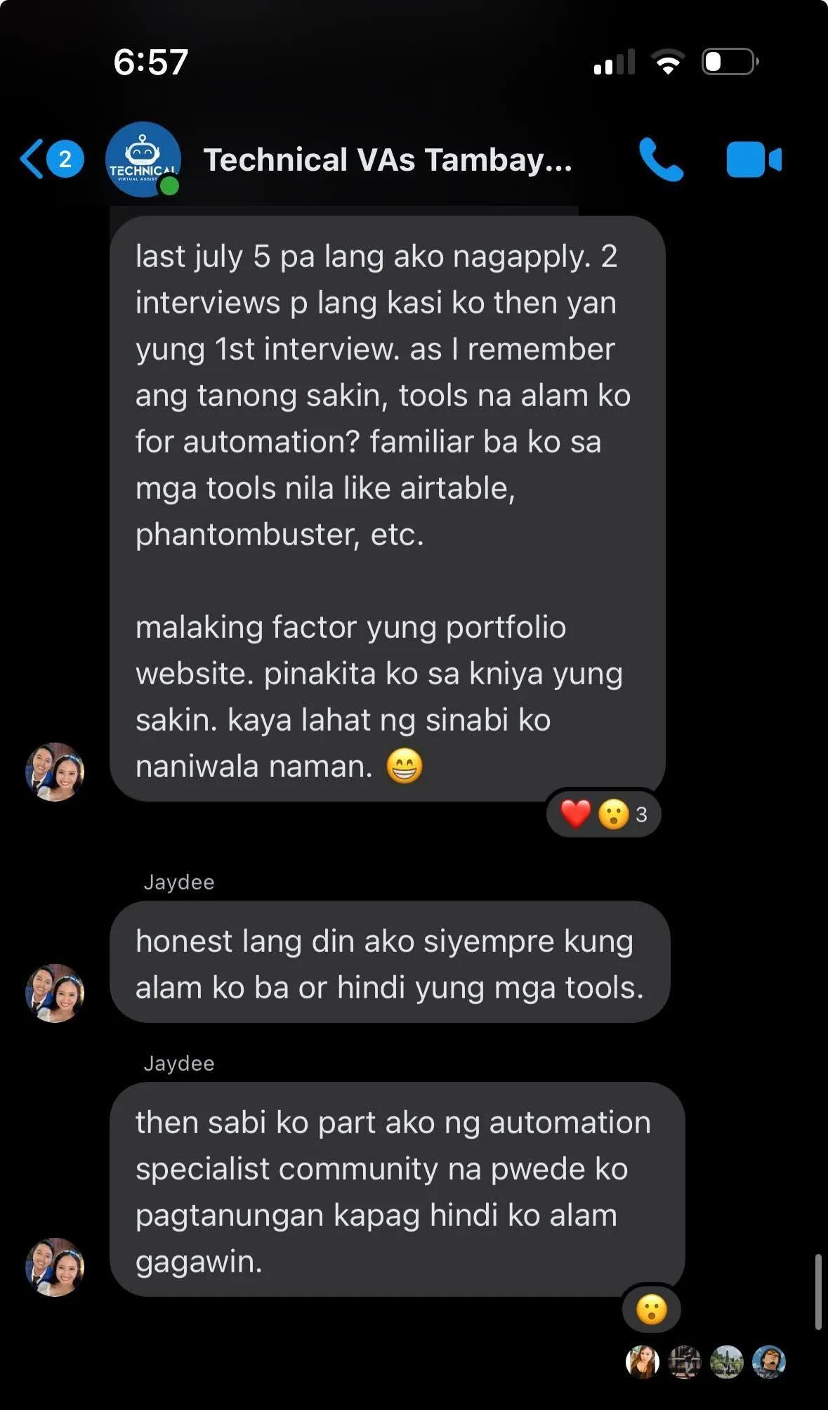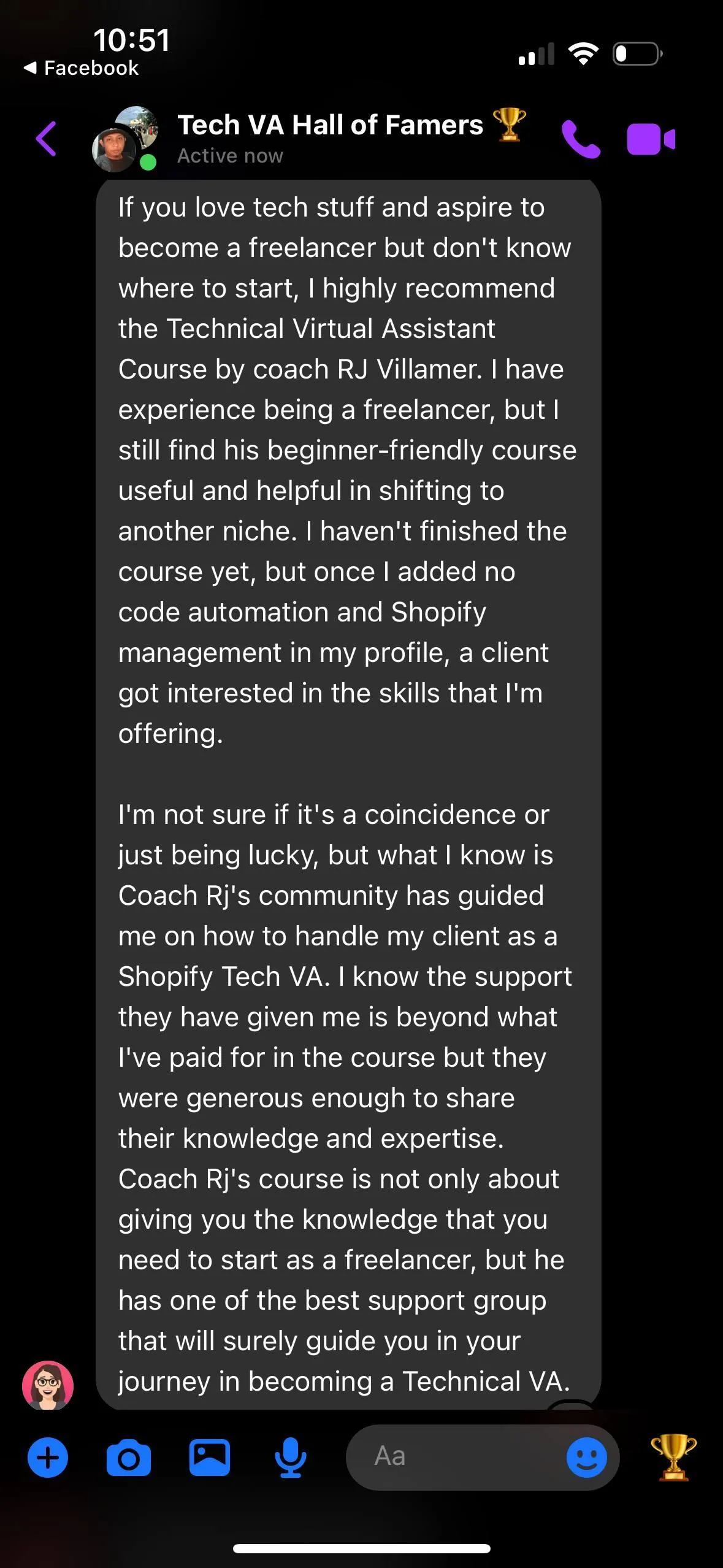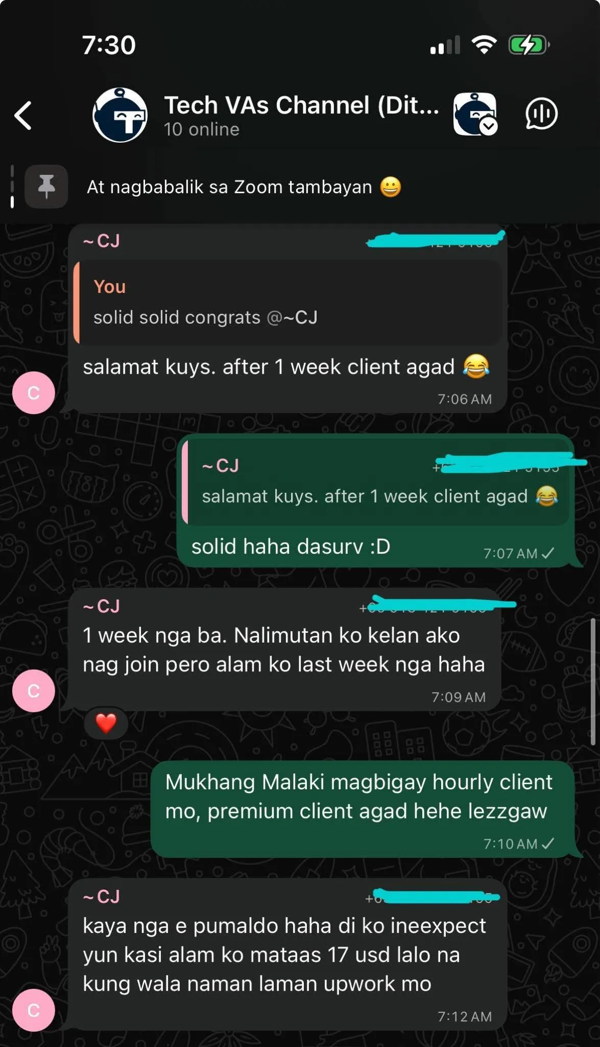 "Kahit 17 years old and student palang ako, nakaland na agad ako ng multiple clients with the help of Kuys RJ and Tech VA community. Sobrang solid ng daily zoom tambayan, pag may tanong ako sa course nasasagot agad. Solid!"