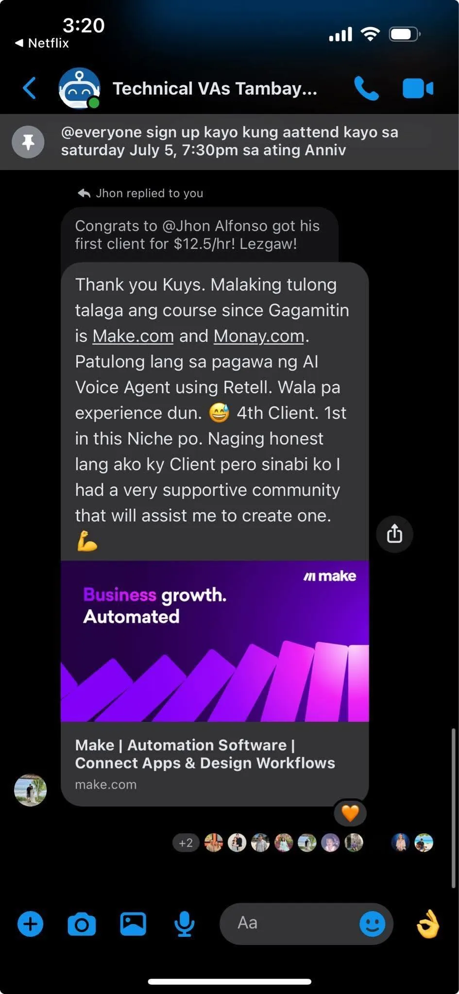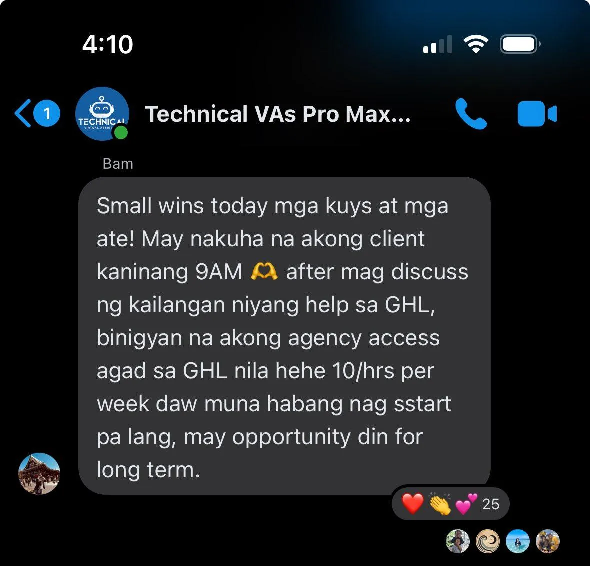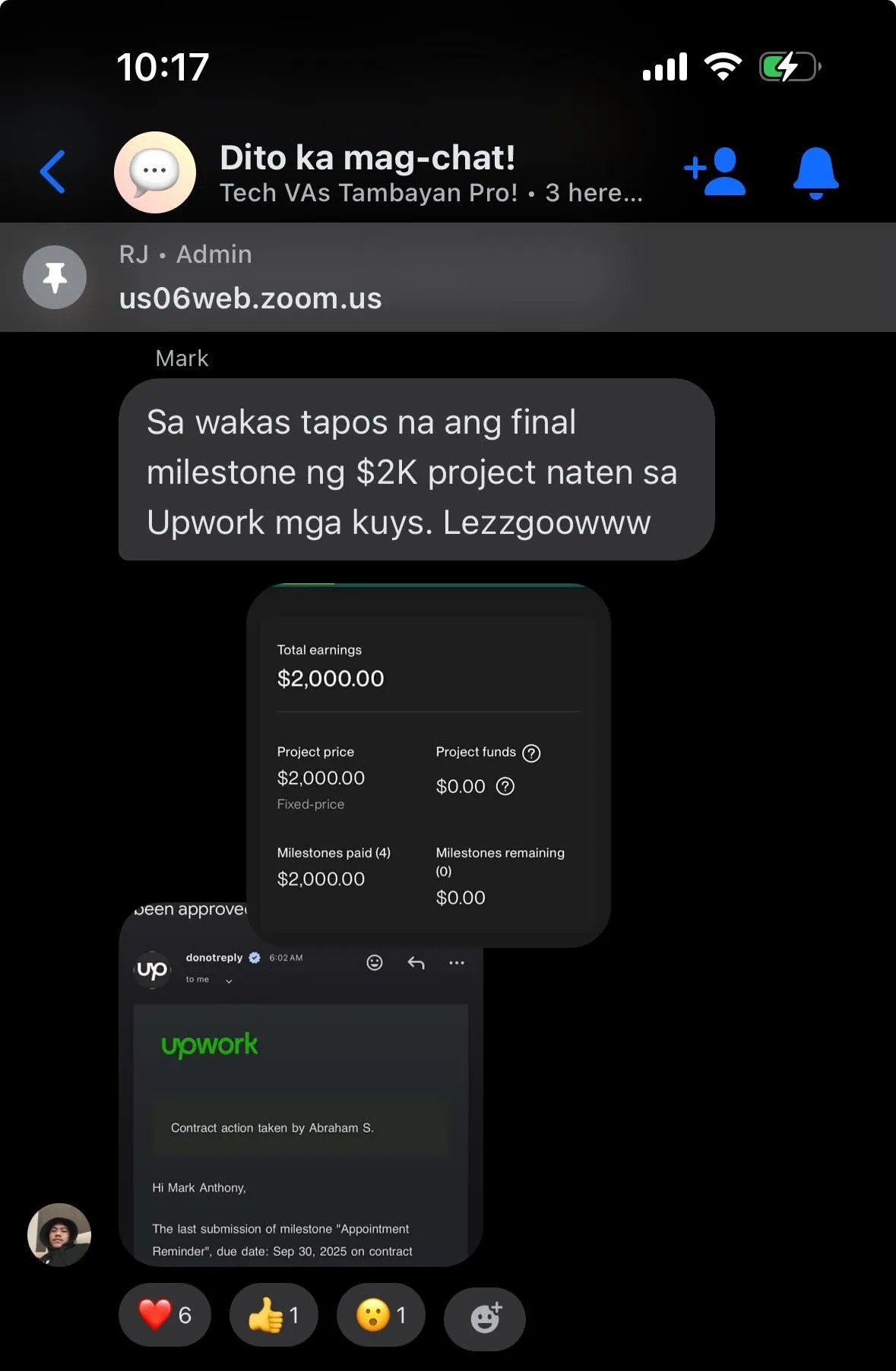 Kuys RJ began his freelancing journey in 2017 and joined Upwork in 2018, where he earned over $100,000 and achieved Top Rated Plus status. As a self-taught freelancer mastering tools like WordPress, Google Apps Script, Zapier, Make, n8n, and GoHighLevel, he grew his expertise and reached rates of $20–$60 per hour. But with too many clients reaching out, he realized he couldn’t handle all the projects alone—he’s not Superman, after all. That challenge sparked an idea to build a supportive community of Technical Virtual Assistants who could share clients, opportunities, and blessings together.
