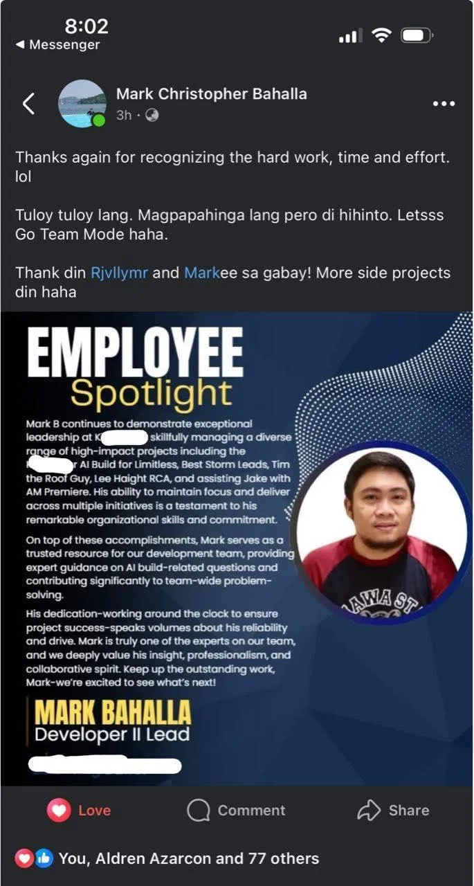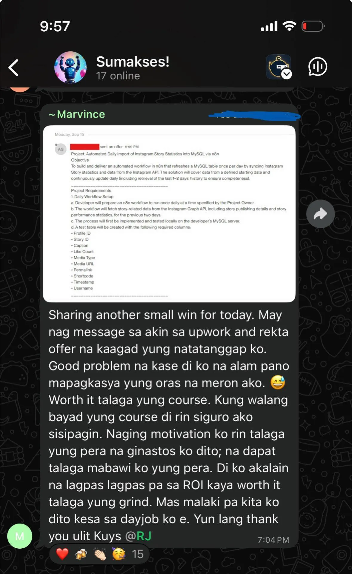 Of course! He is RJ, a BS Computer Science graduate with 10 years of IT industry experience, has been freelancing since 2017 and on Upwork since 2018, where he became a Top Rated Plus freelancer earning over $100k specializing in AI Automation, consistently charging $20–50/hr, currently managing 3 direct clients (outside Upwork), and running his own Upwork agency that has already earned $10k+. He didn’t consider himself a coach, just call him Kuys RJ, as he still does freelancing like you.